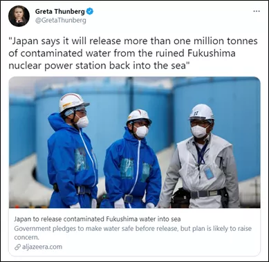 就在日本政府正式宣布向太平洋排放核废水后,包括中国在内的多国均对此举表示了谴责。与此同时,不少人也把目光投向了以宣传激进环保闻名的格蕾塔·桑伯格,想看看这位瑞典环保少女对此事的表态。但从她在推特上的表现看,桑伯格对此事的回应却很耐人寻味。