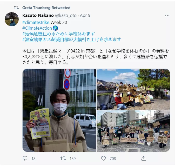 当然,相比看热闹的网民,对桑伯格这次表态感到最为失望的,恐怕是她在日本的支持者。自桑伯格靠推行激进环保出道以来,她在日本也圈了不少支持者。4月9日,桑伯格还和自己的日本粉丝在推特上转发互动,遥相呼应。