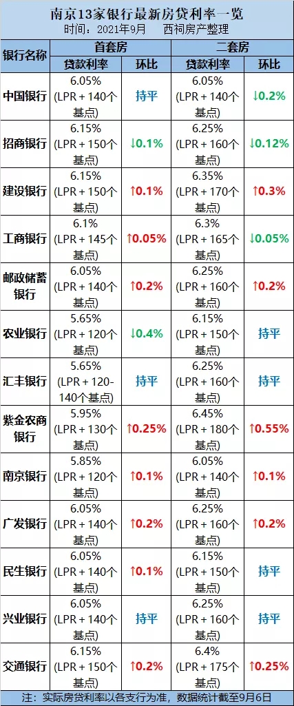 今天(9月6日),西祠房产摸底南京13家主流银行房贷利率发现,南京各大银行房贷额度持续紧张,首套、二套房利率又上涨了!