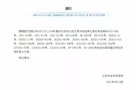 沈阳24幅地停止交易、22宗继续交易,停止交易地块占比,达到了52.2%,超过一半。