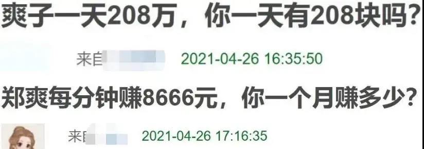 据2021年第一季度薪酬调研报告显示,南京平均月薪达8567元,想挣1.6亿需要1556年,而郑爽只需要77天。日薪208万,一个上班族需要拼死拼活干20年。