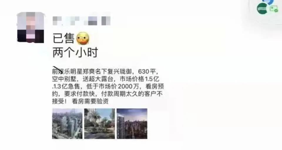 此前,网上曾曝出郑爽在上海复兴珑御的空中豪宅,购入价8000万,按照其日薪208万,40天就能赚出来。据网传消息,该处房产1.3亿售出,郑爽赚了5000万。