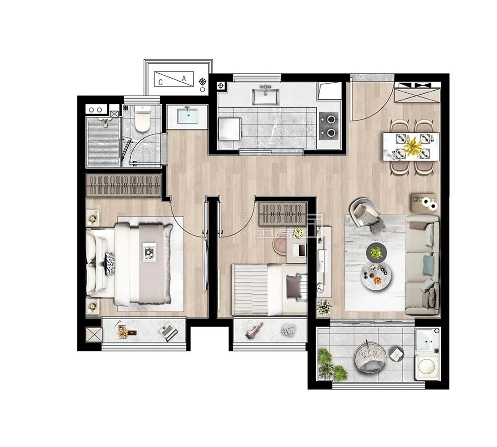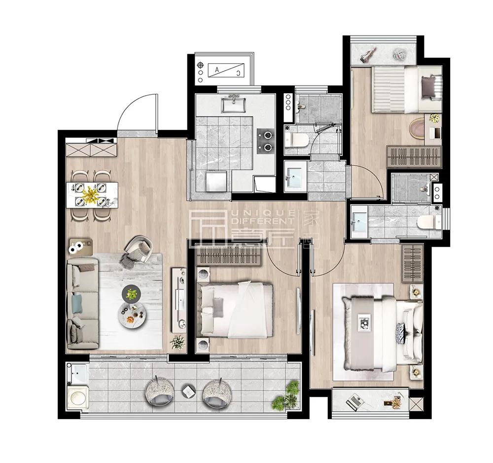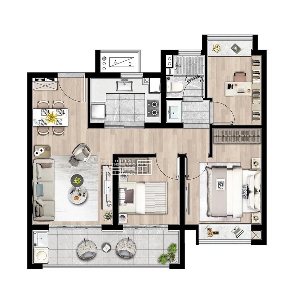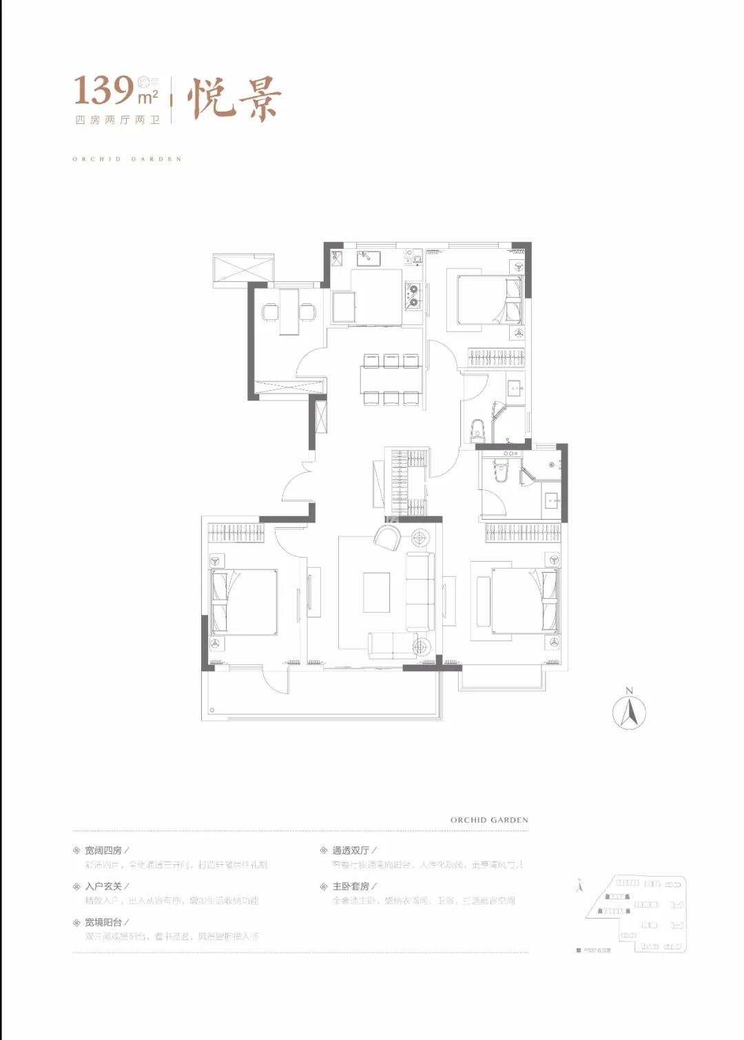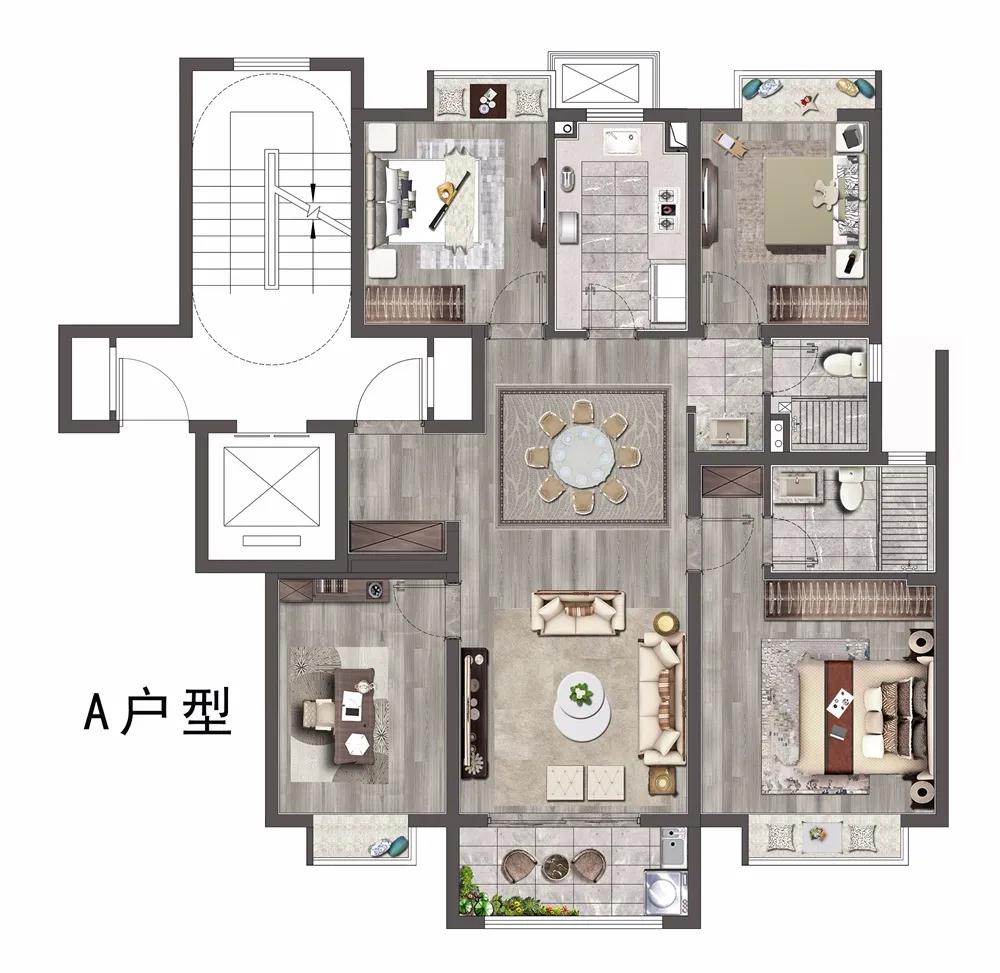 半山云邸A户型:户型建面约121㎡,该户型有独立入户玄关,私密性比较好;整体布局较为方正,三开间朝南设计,采光比较好;四卧分离,卧室均设观景飘窗,观景视野佳。