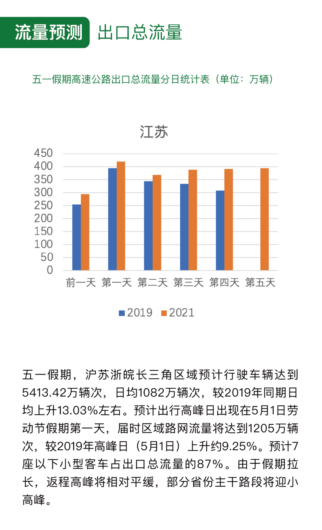 随着国内严格有效的疫情防护,加上新冠疫苗接种的大规模推广,疫情趋于稳定,群众出行意愿升高。根据江苏省交通运输厅的预测,今年的五一假期,“出游潮”与“补偿性返乡”叠加,出游需求将暴增,省内高速公路、干线公路将迎来新一轮的出行高峰。