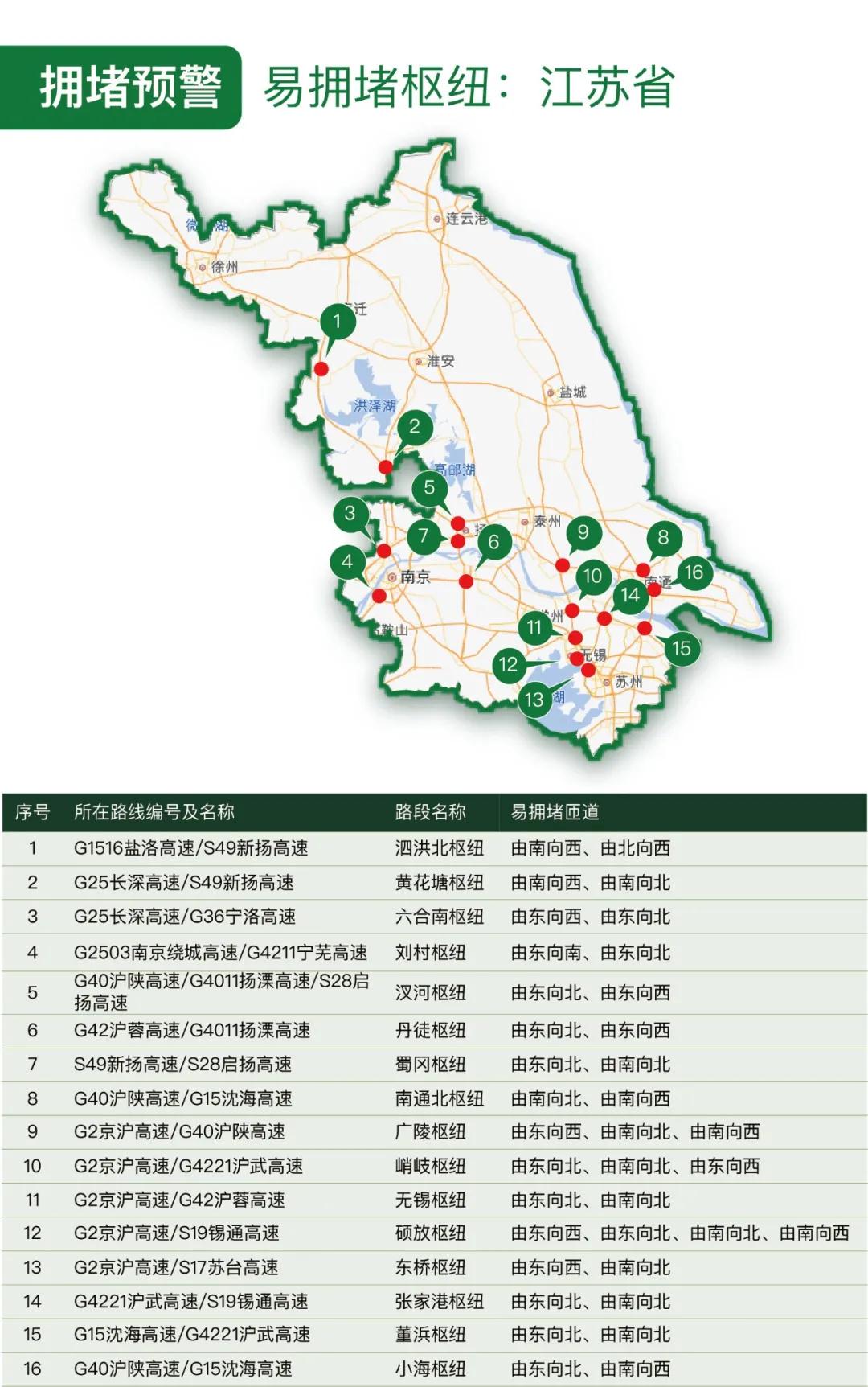 部分高速公路枢纽在高峰时段易发生拥堵,通行车辆请注意减速慢行。