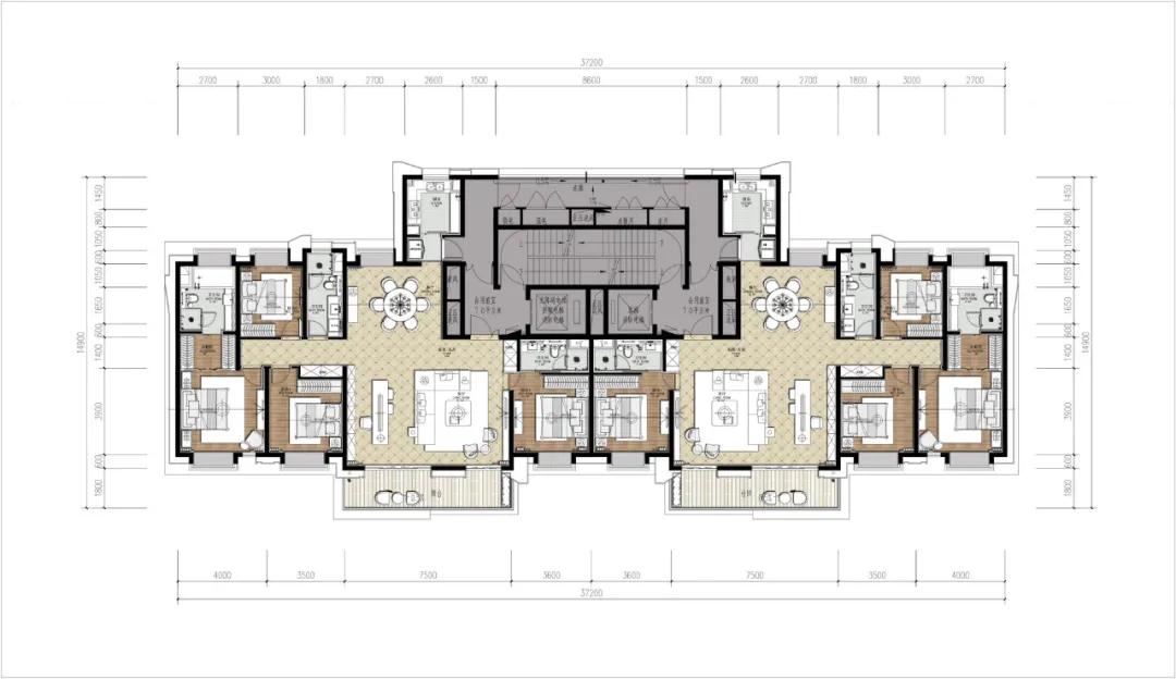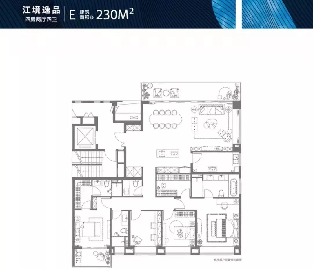 项目主力户型建筑面积约127-170㎡,楼间距高达85米,中间有约5000㎡的景观区,得房率大概在80-82%,一梯一户。