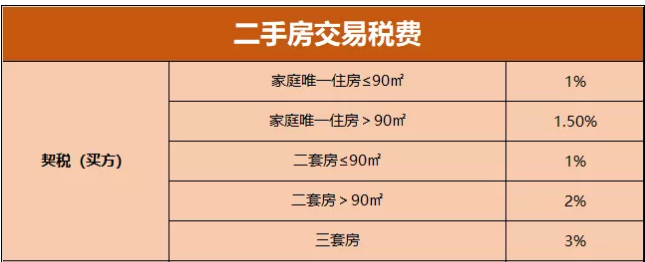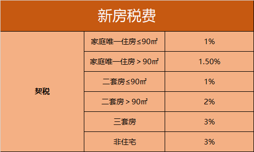 个人购买家庭唯一住房,面积不超过90平方米,按1%的税率征收契税;面积为90平方米以上的,按1.5%的税率征收契税。