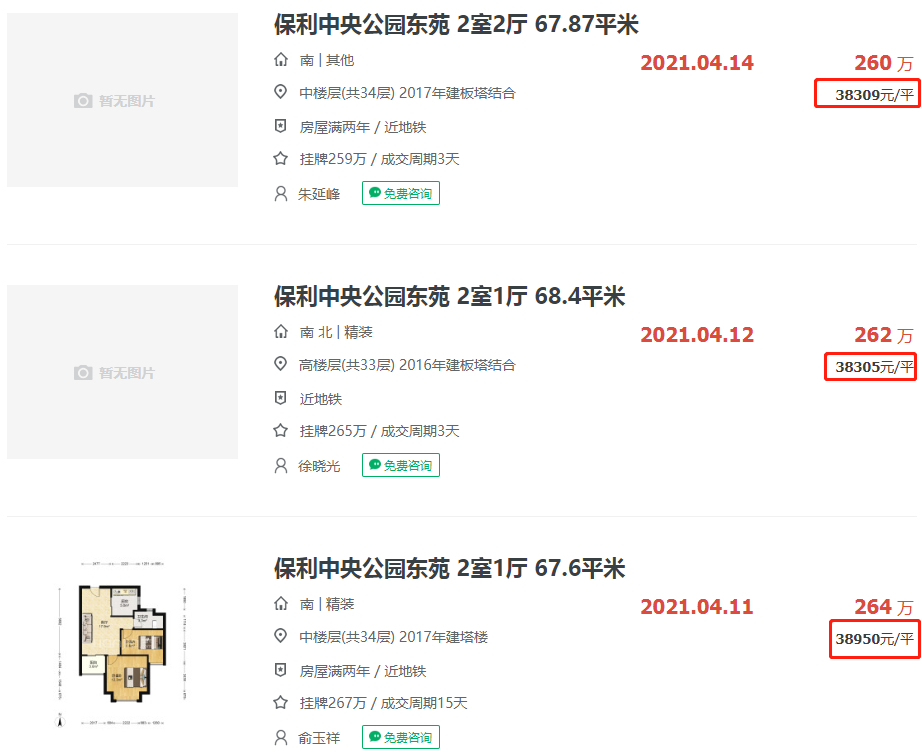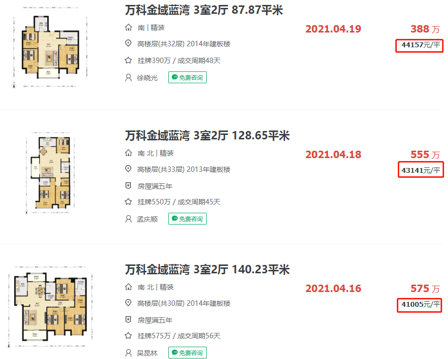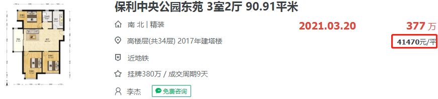 近期成交价在3.2-4.1万/㎡之间,随着面积的改变波动较大。
