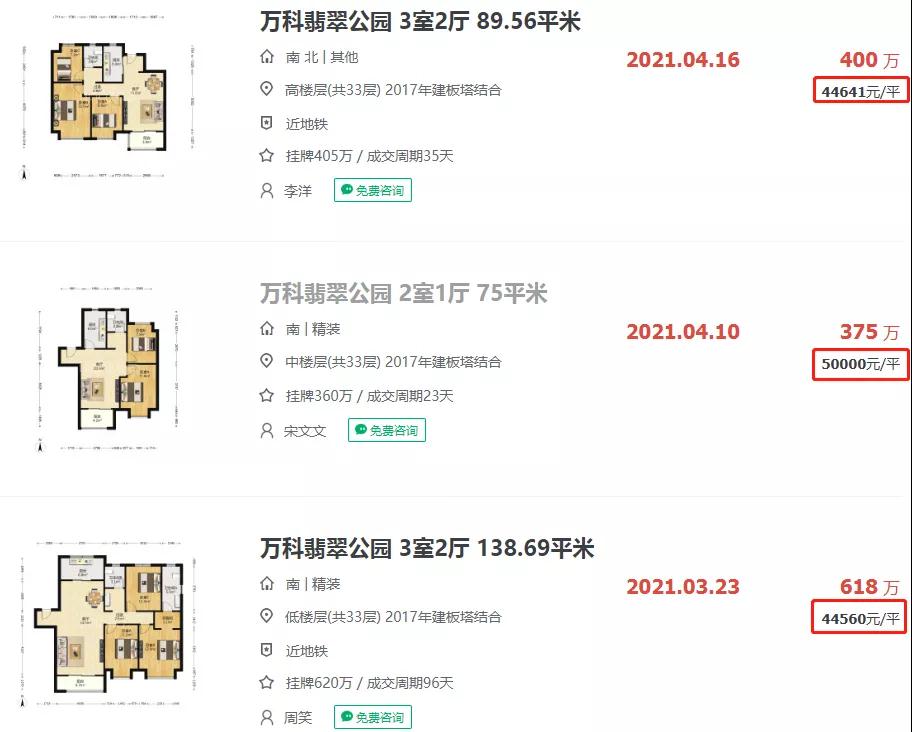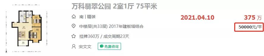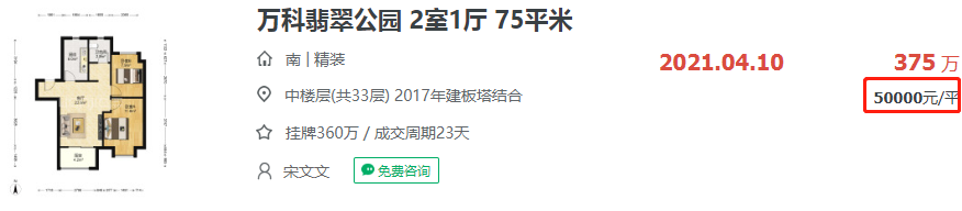 4月10日,江宁九龙湖板块的万科翡翠公园二手房成交价突破5万/㎡,创下板块新高,也让九龙湖成了继百家湖之后,江宁第二个房价突破5万的板块!