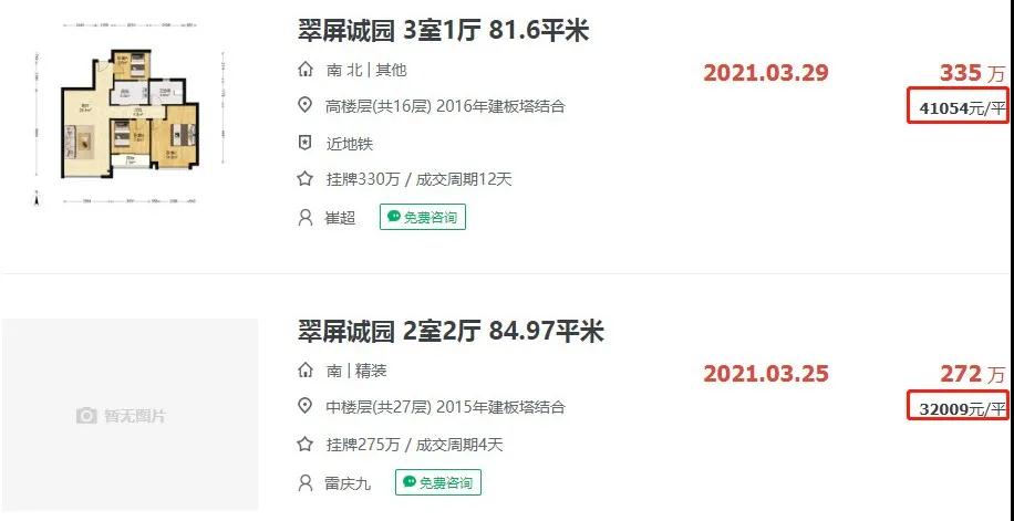 除了万科翡翠公园,九龙湖板块的其他二手房价格也在创下新高,板块热度持续上升!
