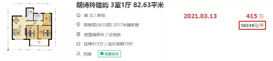 3月13日,百家湖板块的朗诗玲珑屿成交了一套82㎡的二手房,成交单价50224元/㎡,总价415万,直接刷新该小区的历史成交最高记录,也让板块房价第一次突破5万大关!