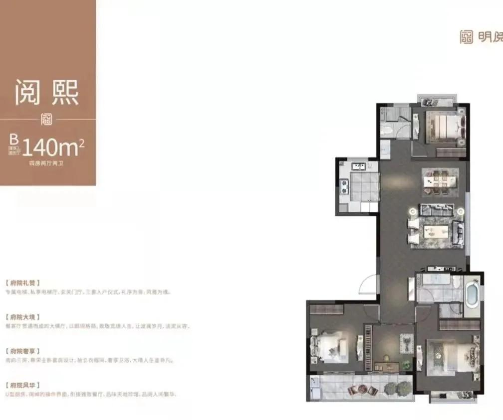 本次首开主力户型为140㎡A户型,占总套数的75%,还有约20余套140㎡B户型,十几套170㎡户型,全部位于南侧楼栋的边户。