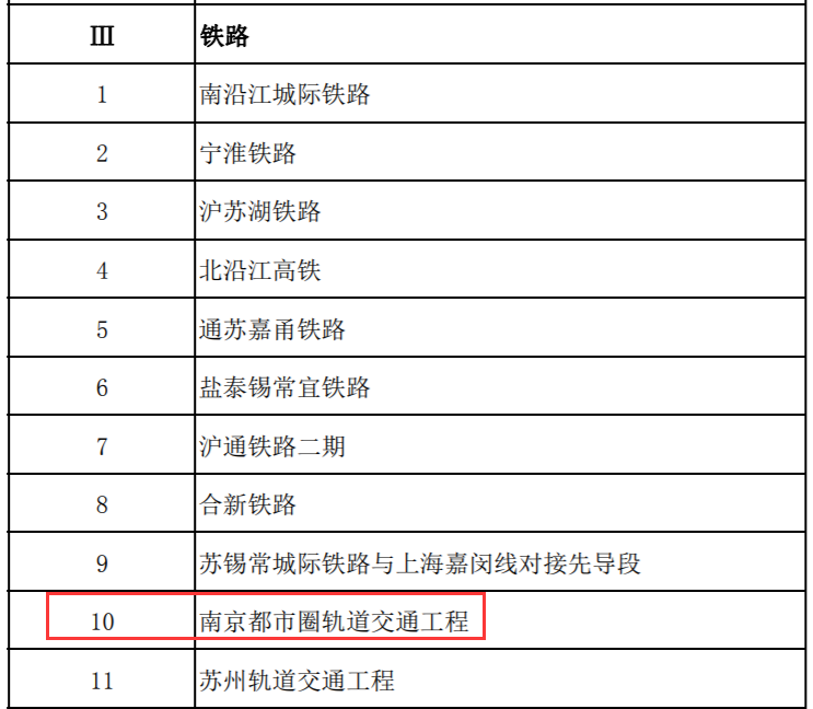 南京有36个项目在列,其中包括南京都市圈轨道交通工程。