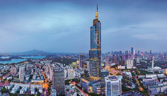 傍晚时分,新街口德基广场二期58楼,丽思卡尔顿的行政酒廊香气四溢,透过全景式的落地窗北眺,夕阳余晖中的紫金山和玄武湖尽收眼底。