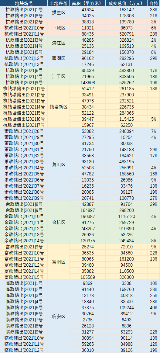 此次出让中,自持比例最高的为滨湖新区地块,由本土房企地上集团以40%的自持率拿下,为杭州土拍史上之最。而值得一提的是,自从2019年杭州施行“限地价、限房价”的双限政策以来,最高自持比例也不过26%。