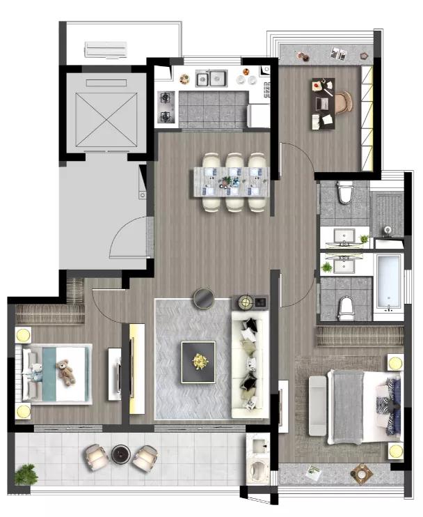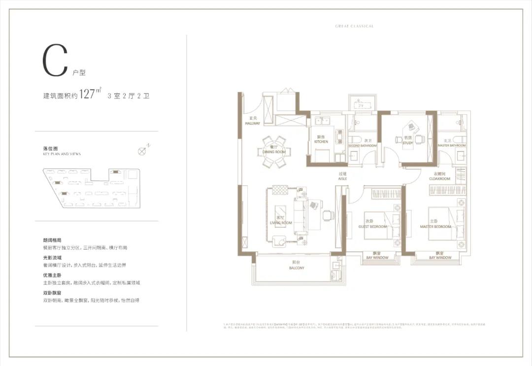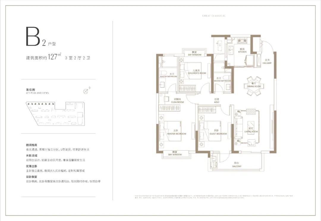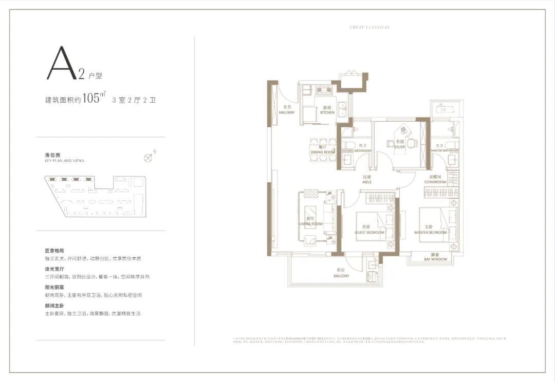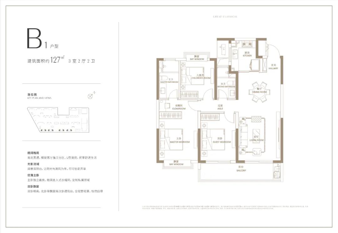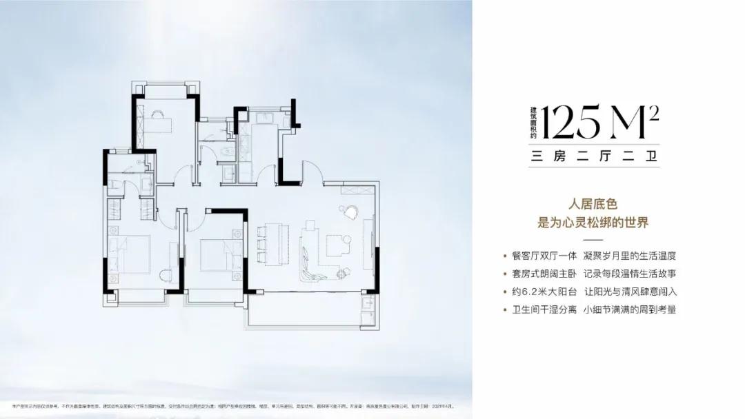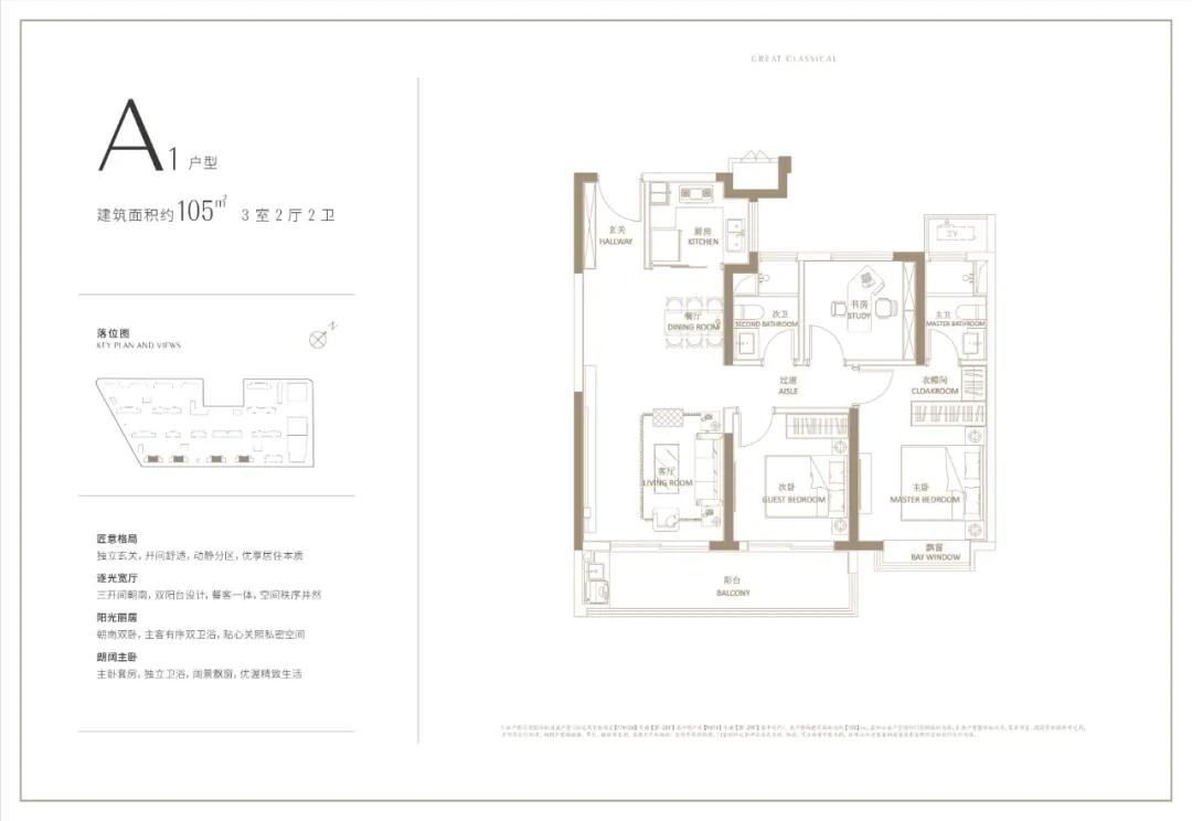 建面约109㎡龙熠三房:三开间朝南,南向客厅,主卧瞰景飘窗,次卧宽尺双阳台设计