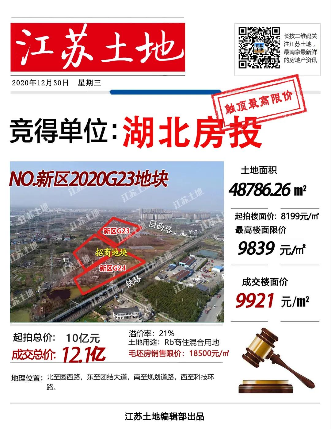 地块于2020年12月31日被湖北房投竞得,成交楼面价9921元/㎡,未来毛坯限价1.85万/㎡。