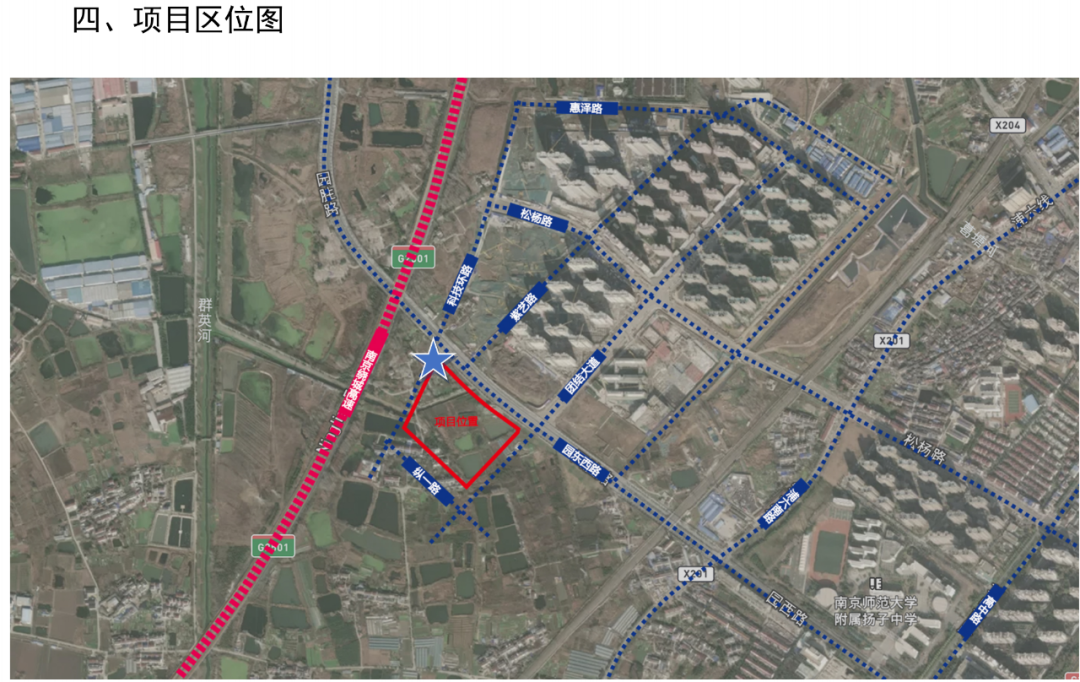 该项目位于南京市六合区葛塘街道,江北新区新园路以南、团结大道以西。项目距离S8号线大厂站约1.5公里,距离美利广场约1.8公里。