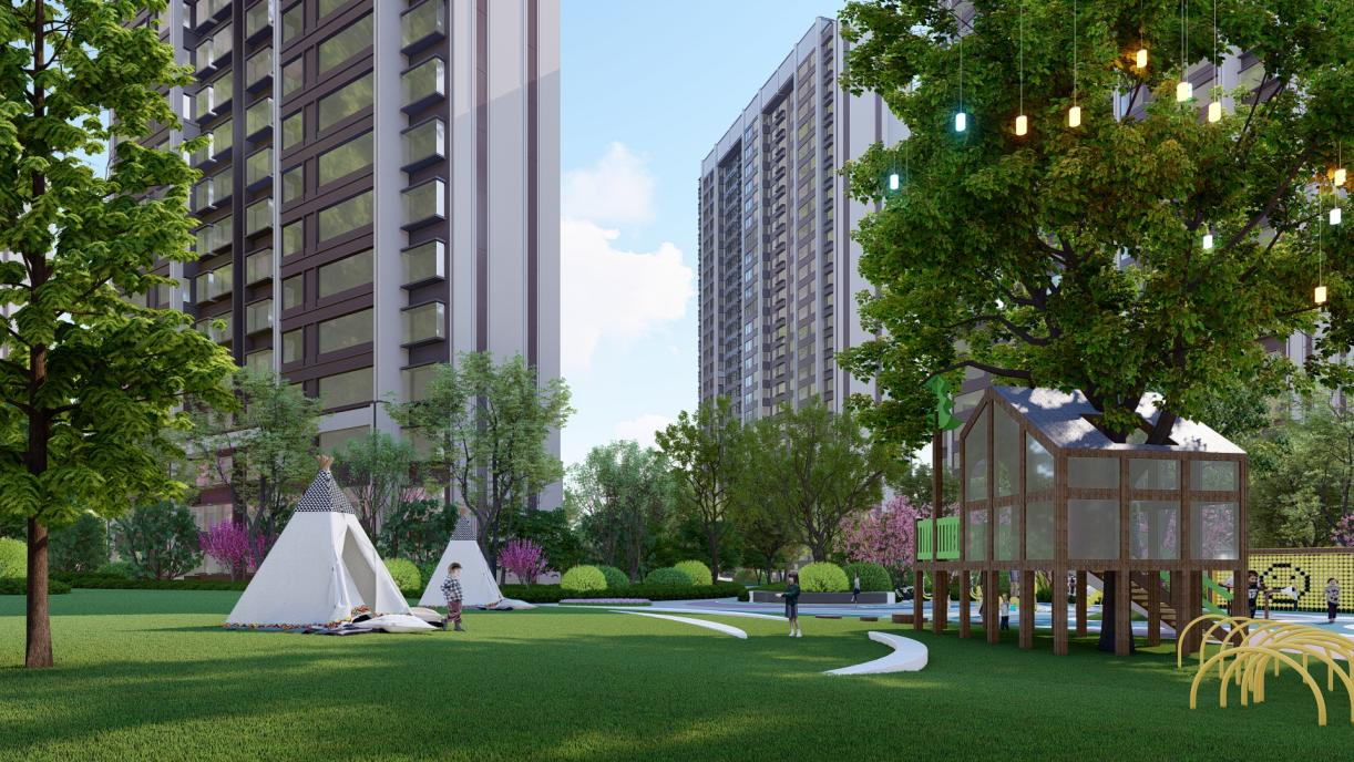 与传统社区游乐空间只为儿童设计的不同,君项目创新性打造银伙虫乐园,君荟希望这块区域,不仅仅是孩子们的游乐场(树屋滑梯、儿童专属器械);也是父母们的休憩区(点缀式的看护座椅及家长看护区),满足成年人心中的那丝童趣。在此大孩子和小孩子们可以共同玩耍,一起成长。关上门是小家,推开门是“大家”,让社区成为银城家人们的第二个家。