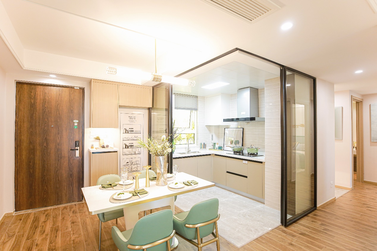89㎡户型在经典三房户型基础上做出了创新,交互式厨房让整体空间看上去更大,也方便家人之间的互动;102㎡户型的南向双阳台、套房主卧极大提升了生活品质感。