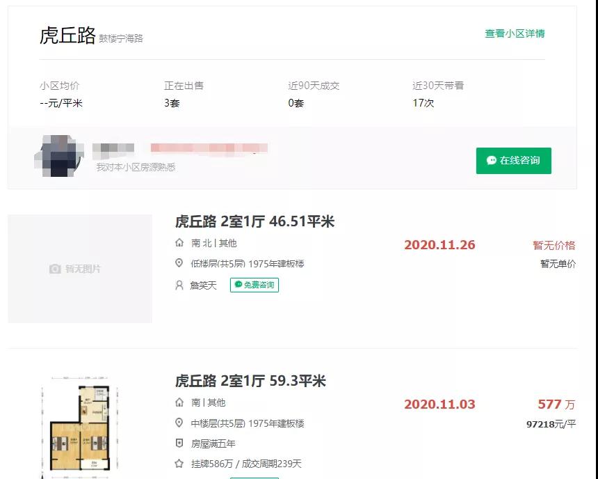 虎丘路小区位于南京市鼓楼区,是南京的“顶流”双学区房。小学学区为力学小学,初中学区为南京市第二十九中。据链家官网显示,该小区均价显示为“暂无价格”,去年成交单价约10万/㎡。