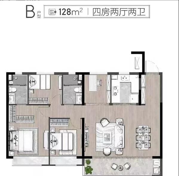 建面约127㎡ 三房两厅两卫