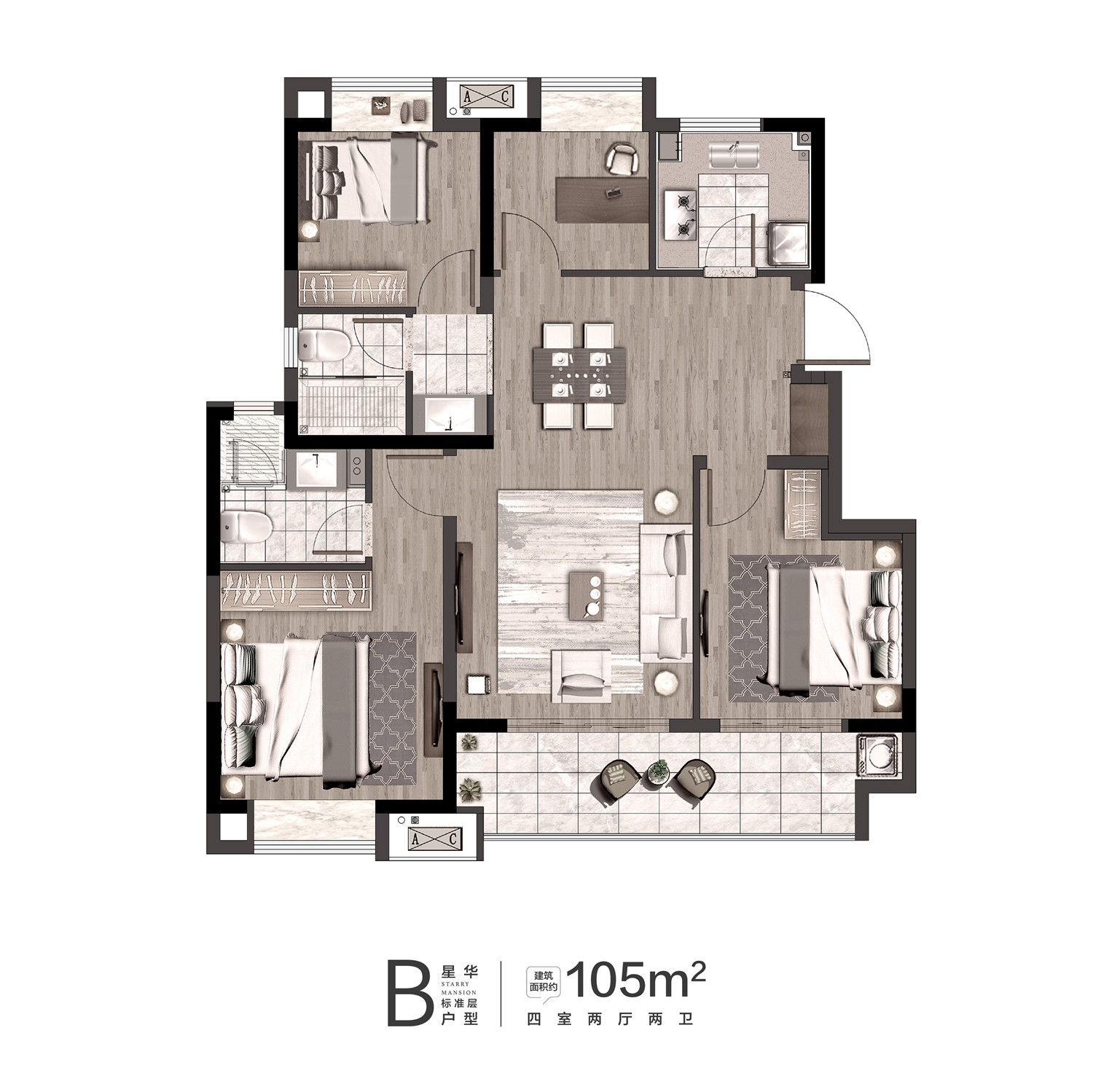 建面约105㎡ 三房两厅两卫