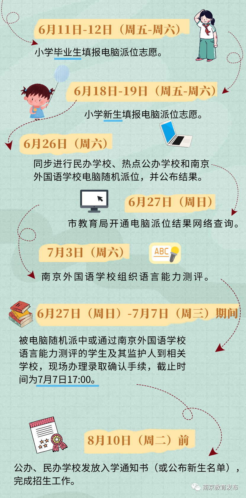 另据了解,各区教育局将在南京市户籍学生义务教育学位派定完成后,统筹安排符合政策的随迁子女进入公办学校就读。相关入学登记时间和学位派定时间,以各区教育局公布为准。