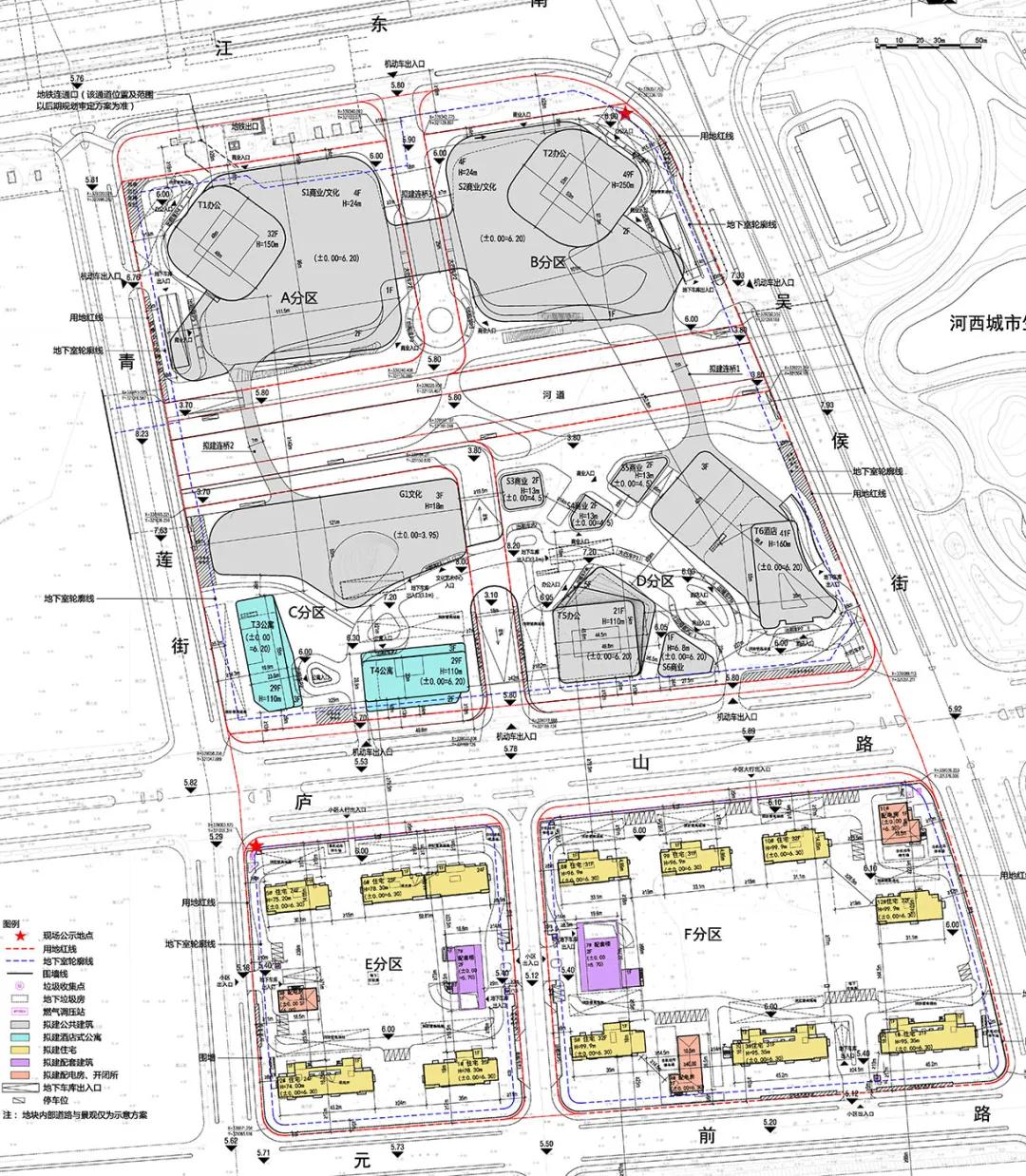项目共有6个分区,其中北侧位置,近宁和城际吴侯街地铁站位置将打造商业和写字楼、公寓,而南侧E分区和F分区是住宅组团。