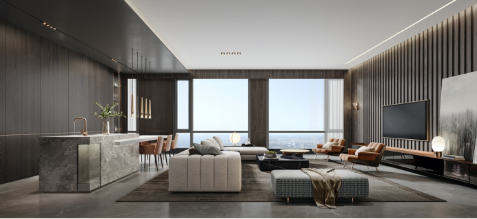 顶层视野之上,全景玻璃幕墙和环绕式客厅完美搭配,同步世界酒店的精奢质感,科技系统悉心呵护所有感觉触角。空中会所、酒店式服务的加持,为云端公寓带来精奢荟萃的梦幻生活。