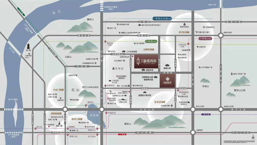 星叶瑜憬尚府处于栖霞区迈皋桥街道,北临迈尧西路,东临逸文路,南临熙湲路,西接现状住宅,紧邻南京地铁1号线迈皋桥站。