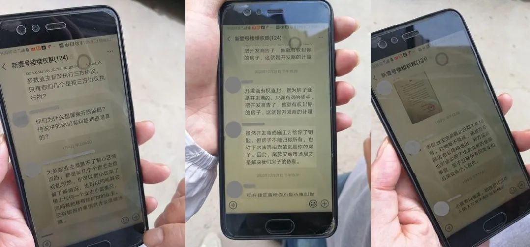 “质监局这个楼给人尴尬的地方在哪,(其他业主)都觉得你有钱,你有地位,人家就不理你,所以就分成两派了,其他团购的跟着小区大群,1#楼单独成了个群。”老刘是1#楼2单元的业主,妻子在质检局工作,因为此前质监局要求职工不能维权,老刘就替妻子出面,最后还成了业主代表。