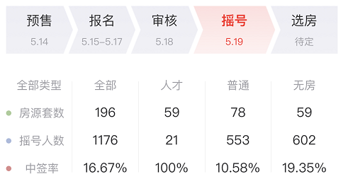 南部新城纯新盘---明阅府摇号结果出炉,首付6成起、验资200万,196套房共有1176组买房人报名,整体中签率约16.7%,平均6人抢一套房,预计明天(5月20日)开盘。