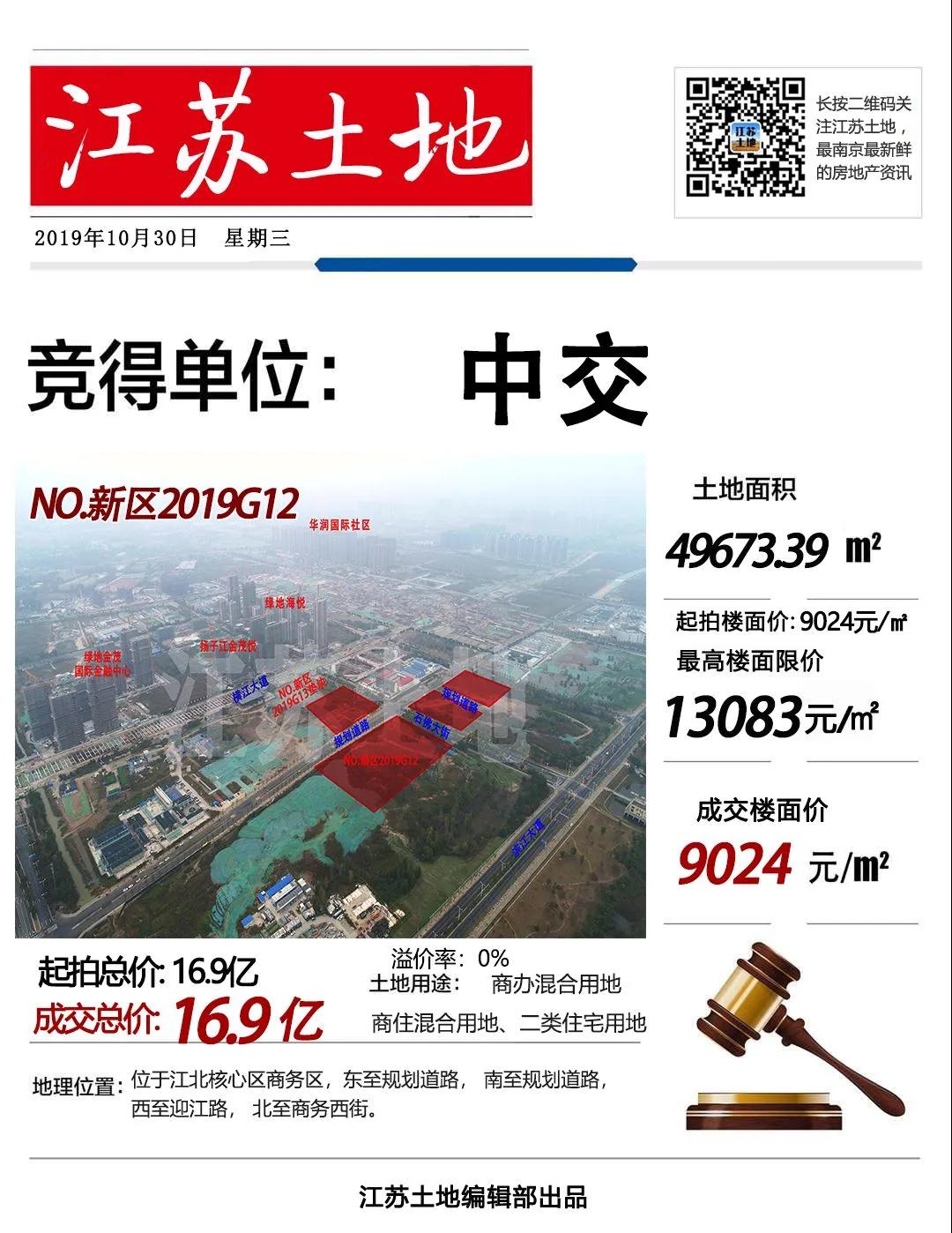 该地块于2019年10月30日被中交以底价16.9亿拿下,该地块要求引进世界500强企业的华东总部,未来将成为江北核心区的一大重量级配套。