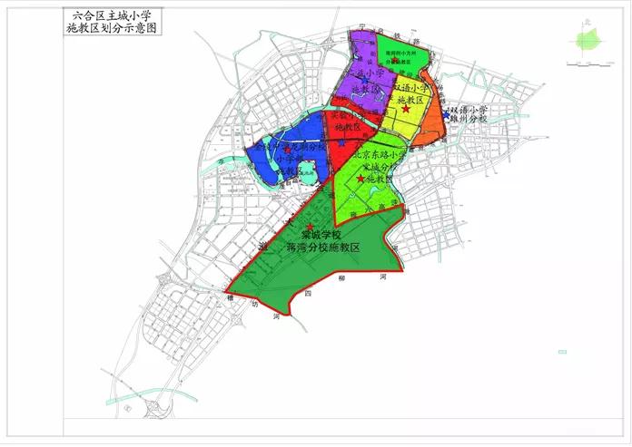 六合区主城中小学施教区范围现包含的小区及社区住户详见学校入学公告。新建小区施教区划分由区教育局划定后公布。