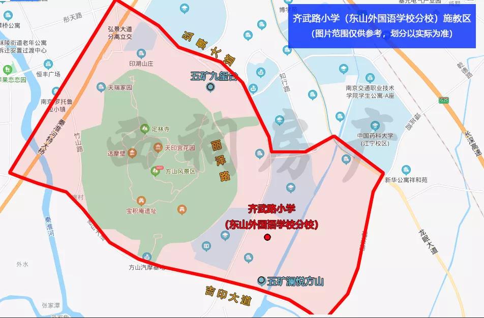 2.天秣路-竹山路以东,南京绕城高速以南,天印大道以西,方山以北。