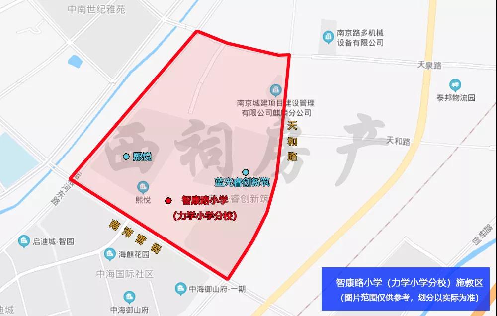 在该施教区范围的小区有:熙悦、蓝光睿创新筑等