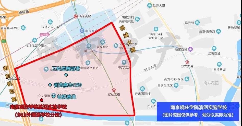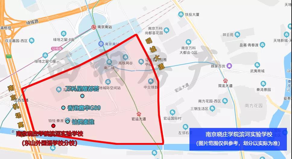 在该施教区范围的小区有:铂悦秦淮、香港嘉华G89、万科星耀都荟等
