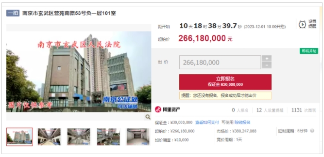 因票据纠纷,城北新玄武恒大翡翠华庭旁的自带商业被法拍。该商业建筑面积为17353.94㎡,起拍价约2.66亿元,评估价约3.8亿元,相当于打了7折,拍卖时间为2023年12月1日10时至2023年12月2日10时止。>>>城北恒大商业2.66亿甩卖…