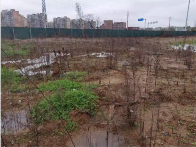 3年前,江宁滨江G08地块被蓝光以总价5.8亿元拿下,却并未上市。从图片上可以看出,该地块闲置多时,已积水、长草,变“鱼塘”。