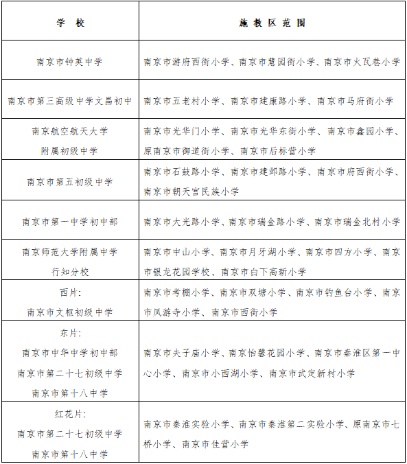 (1)省溧中附属初中:中山西路—中山路—弯子口—中山路—中山东路以南的城区范围。
