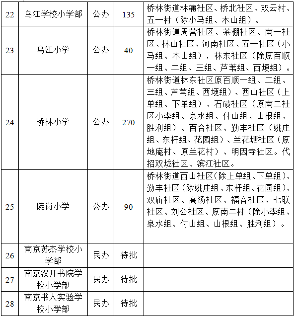 顶山街道临泉社区(不含观山悦花园)、龙虎巷社区、金汤街社区、南苑社区,浦口区内中车浦镇车辆有限公司和工业公司职工子女。