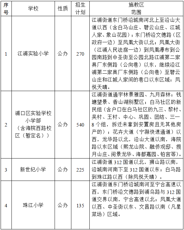 金茂悦、绿地海悦,代招江与城(待该区域配建小学建成开办后再行调整)。