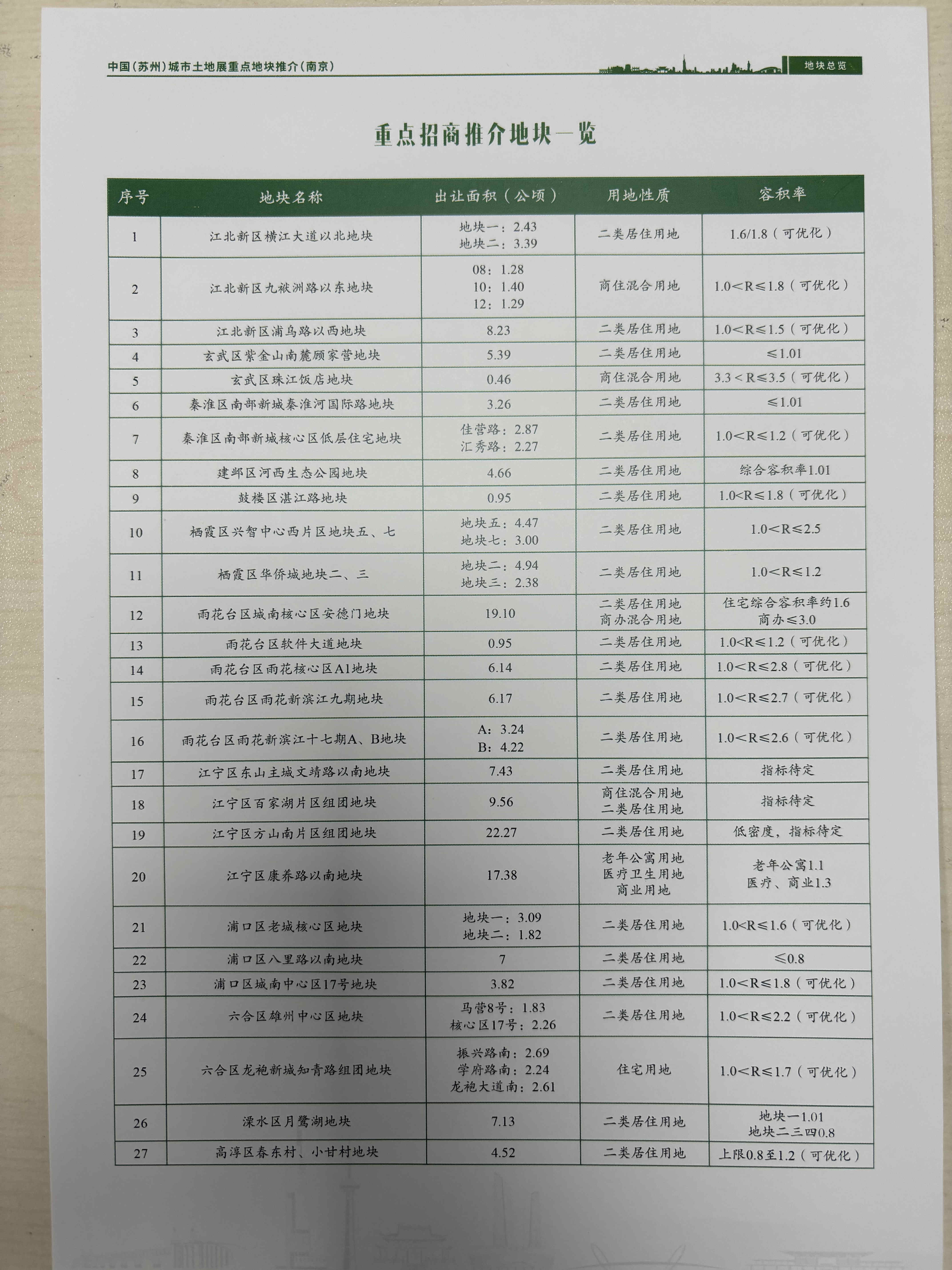 今日(5月23日),中国(苏州)城市土地展举行,2024南京重点地块曝光。这批地块约38幅、总面积约188公顷,涵盖新街口、河西北、河西南、南部新城、百家湖、安德门、雨核、江核等南京热点区域。