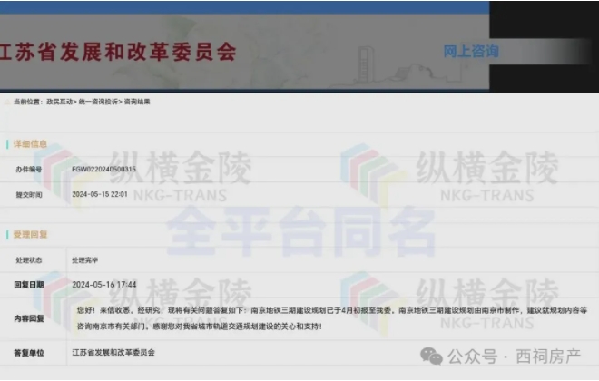 今年2月,西祠房产向官方咨询了南京地铁三轮规划的最新进展。南京地铁回复称:城市轨道交通属于重大基础设施工程,其建设难度大,工期长且投资巨大,须严格按照国家基本建设程序。我市第二轮轨道交通建设规划中的获批线路均已开工建设,按照国家相关规定,地铁集团正在开展建设规划的编报工作,将结合获批项目的实施进展情况,综合考虑相关规划、城市发展需要、财力以及线网客流预测结果等情况,科学、合理制定建设项目及时序,经国家发改委批准后,加快推进轨道交通的建设。
