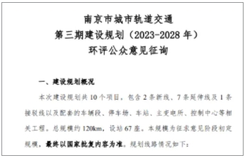 去年1月份,江苏环保公众网发布了南京市城市轨道交通第三期建设规划(2023-2028年)环境影响评价第二次公示!