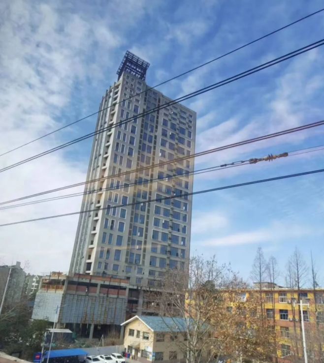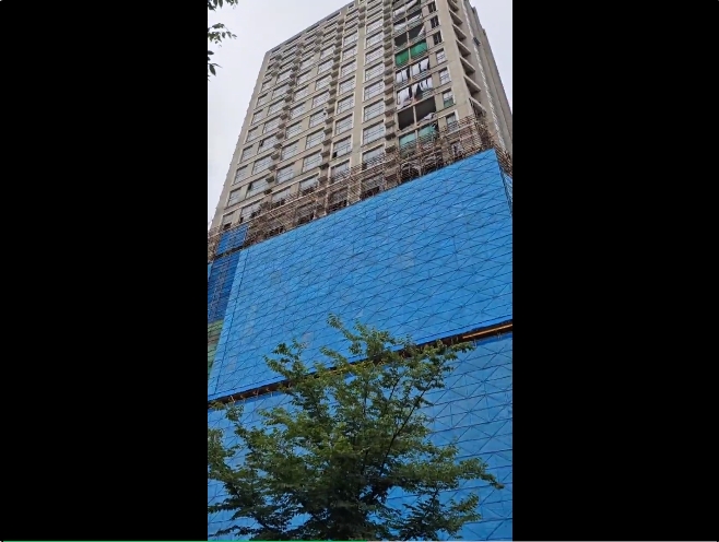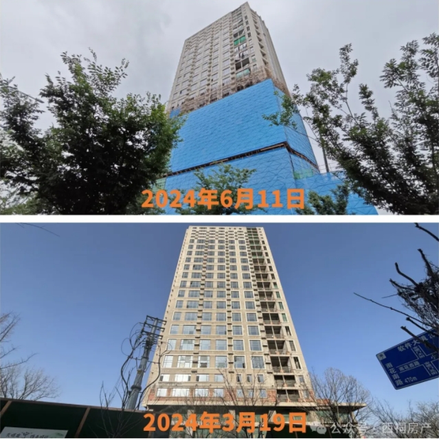 对比今年3月的瑞尔大厦,施工进度明显,蓝色施工围栏已盖至十多层。