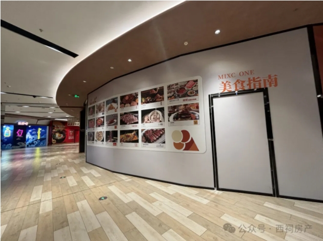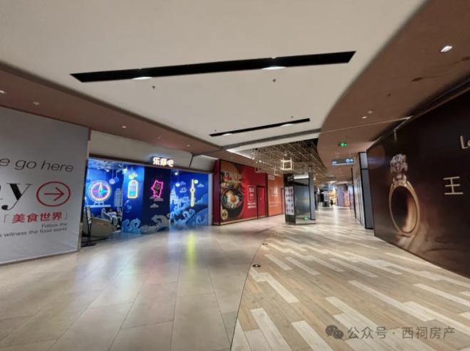 进入商场内部,映入眼帘的是大面积店铺歇业,被围挡,西祠房产粗略统计,被围挡的店铺有3-4成左右。