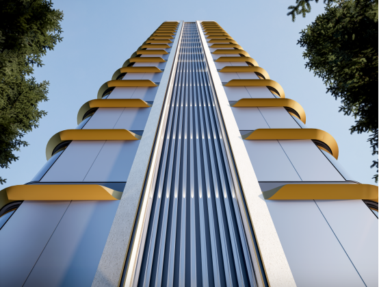·弧形流线立面,搭配首层弧线雕刻天然石材入户大堂,以流动曲线履新城市美学灯塔,为天空献上一首金色之诗。独特艺术画框立面、令人愉悦的3000k色温立面,营造宁静的归家氛围,别具质感与格调。
