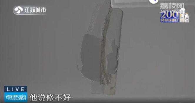交付后的滨江孔雀城因为装修质量不过关被购房者投诉,据南京零距离报道,房屋内部吊顶脱落,墙体出现七八处裂缝,门框也有脱落的情况。